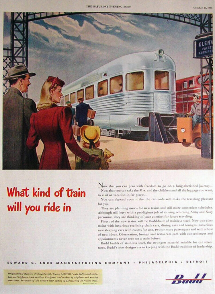 This coach was originally built by the Budd Company as a 10-6 sleeper car for the Norfolk and Western Railway, it carried the name Pulaski County. While with Norfolk and Western it was used on the Pocahontas overnight train between Norfolk, VA and Cincinnati, OH. Sometime in the 1950s the car was sold to the Pennsylvania Railroad who converted the car into a 72 seat coach for it to carry a higher capacity for the 1964 World’s Fair. Following the merger of the New York Central and the Pennsylvania Railroads forming Penn Central, the car would be used in passenger service until it was sold to the New Jersey Transit for commuter train service. In 1989 the car was retired and then sold, this time to the United Railroad Historical Society. The car would again change ownership, now being used by the Ringling Brothers and Barnum & Bailey Circus. The car was sold to the Indiana Railway Museum in 2019 and was rebuilt and refitted by the Crossroads Railcar Services.