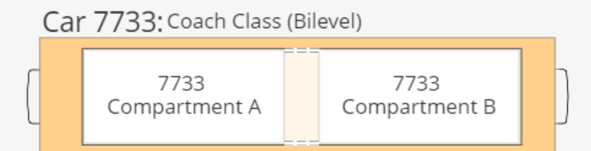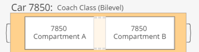 Car is split into two sections each with an upper and lower level. Each section can seat 40 in the lower level and 20 in the upper level.