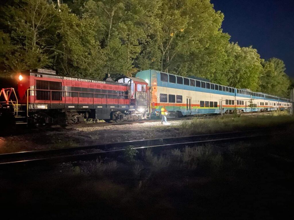 Eventually, the decision was made to relocate the cars to IRM for further inspection and analysis. The saga of shipping these cars by rail began in mid-July 2023 by coordinating with more than nine local utility companies to have them inspect and raise their overhead utility lines, and continued until the cars were delivered by Norfolk Southern at interchange in Huntingburg, IN on September 18, 2023.