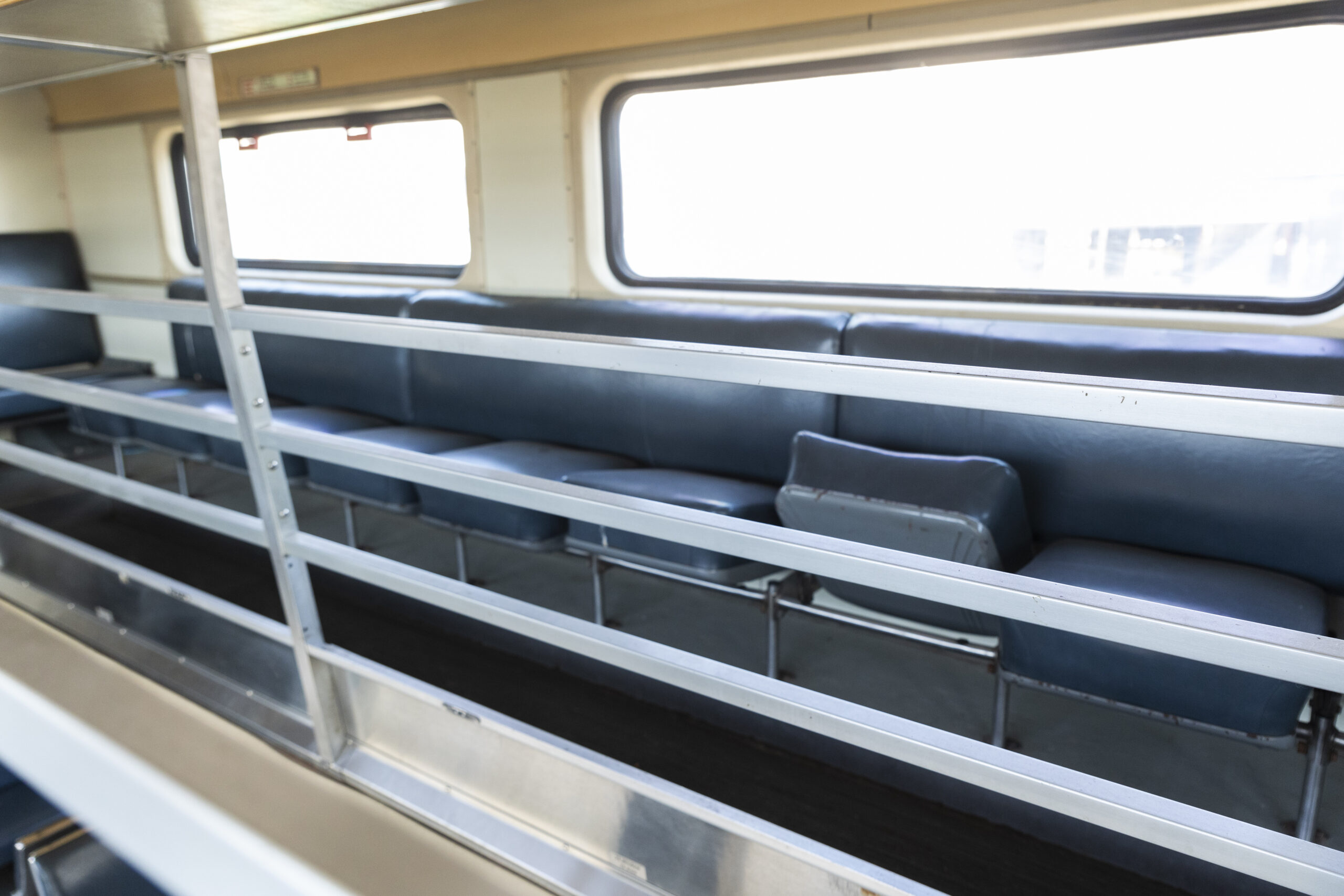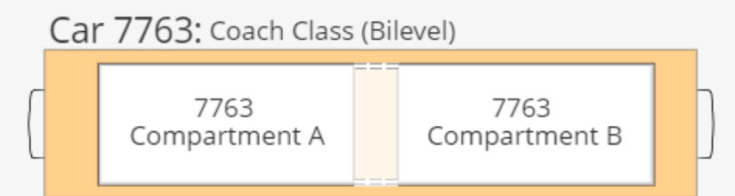 Car is split into two sections each with an upper and lower level. Each section can seat 40 in the lower level and 20 in the upper level.